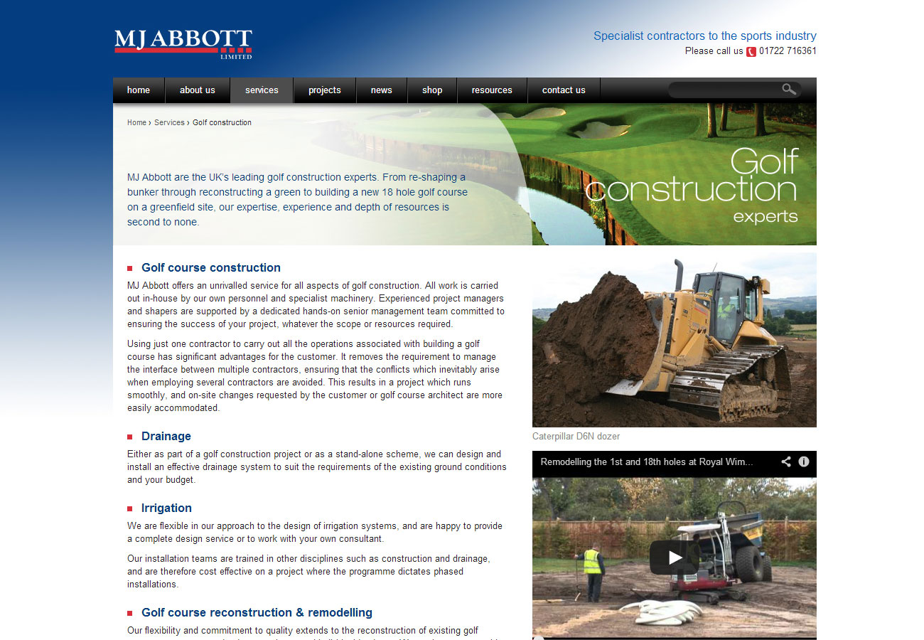 Specialists on golf course construction, sports stadiums and water management, MJ Abbott needed to upgrade their web site to reflect their status within the industry.