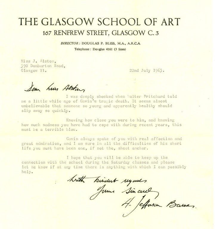 Letters from Jefferson Barnes and Benno Shotz, (shown above), amongst others, show in what esteem he was held.
