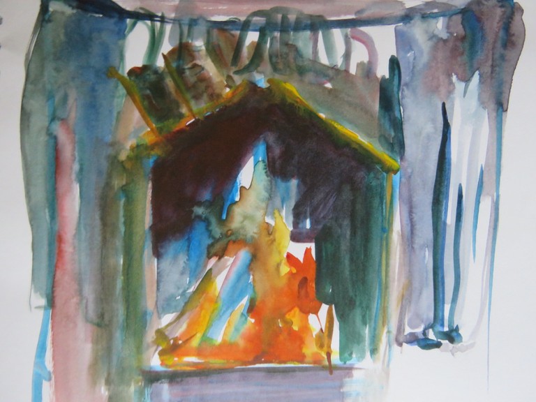 The cottage, the landscape and memories past and present, are imprinted in my imagination. The ancient oak woods we would walk through, swirling lichen covered shapes, loom large in my dreams. The open and uninterrupted view out of the window to the bay, across Loch Fyne to Tarbet, the small fishing village sometimes concealed by mist, or on a clear night, the houses across the Loch take the form of a string of fairy lights. The myths of ancient stones that mark the landscape of ancient Dalriada, and the deserted village, where it is said that the last occupant, in 1914, took his own life. People have walked here before me and since. Night time lit by the soft glow of fire and dull light of paraffin lamps, storytelling. Waking up to the gentle patter of rain drops on the roof and cry of seagulls. This place conjures up in my mind so many visual and sensory emotions, only by beginning to document them in my work can I make sense of them. Asherson's quote resonates with me, the landscape and human presence exist together 'at some level one'.